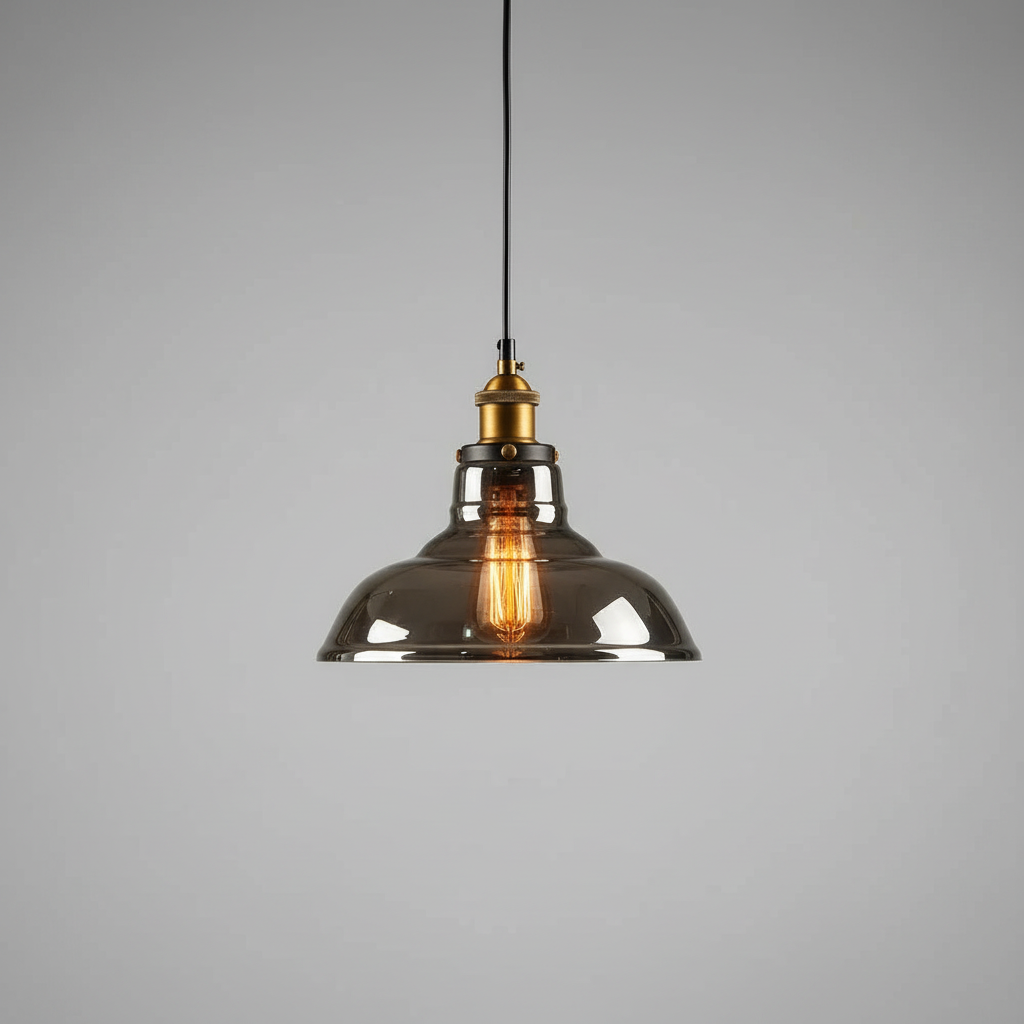The Elliot Retro Pendant Light merges vintage charm with a modern industrial aesthetic. Featuring a stylish smoky gray glass shade and durable metal accents, this pendant light enhances the ambiance of any space. Ideal for living rooms, dining areas, or kitchens, it creates a warm and inviting atmosphere.